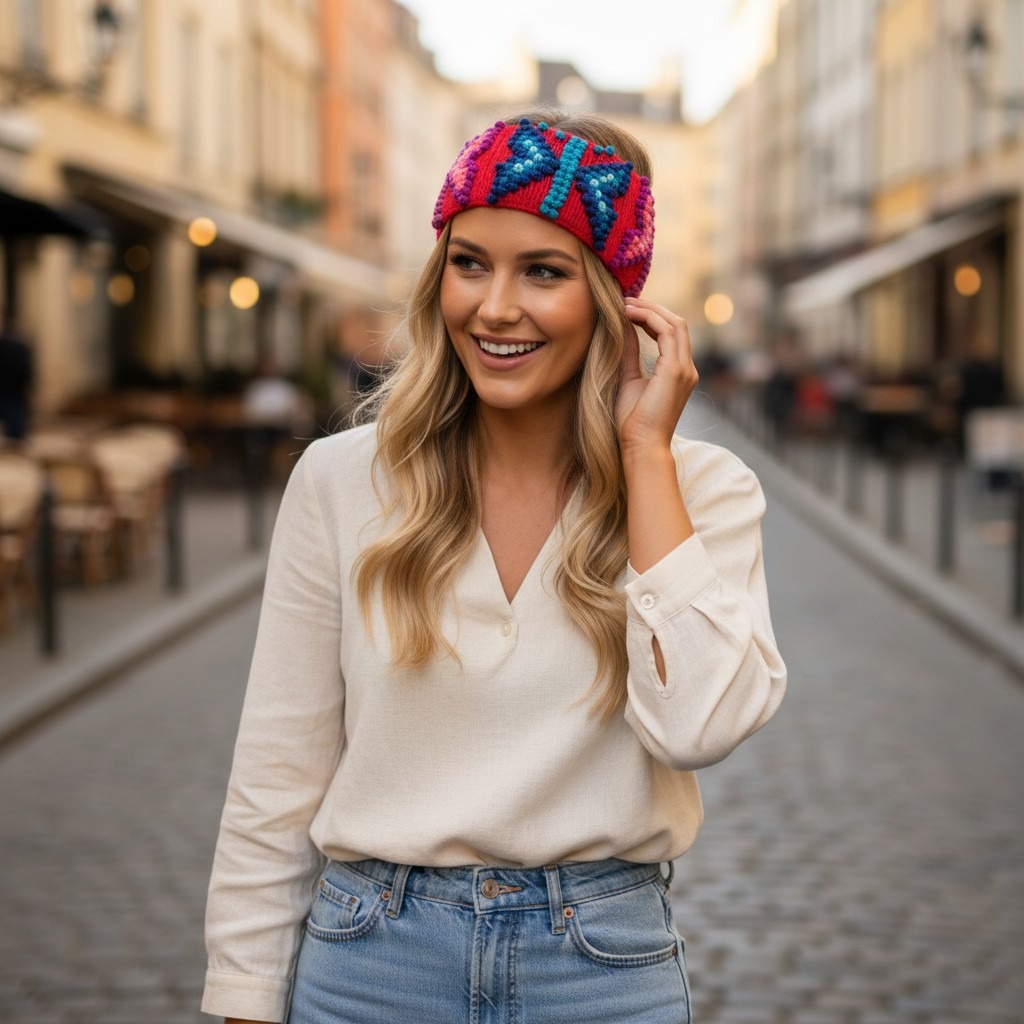 Add a pop of colour and whole lot of warmth to your winter wardrobe with this alpaca wool headwarmer from Peru.