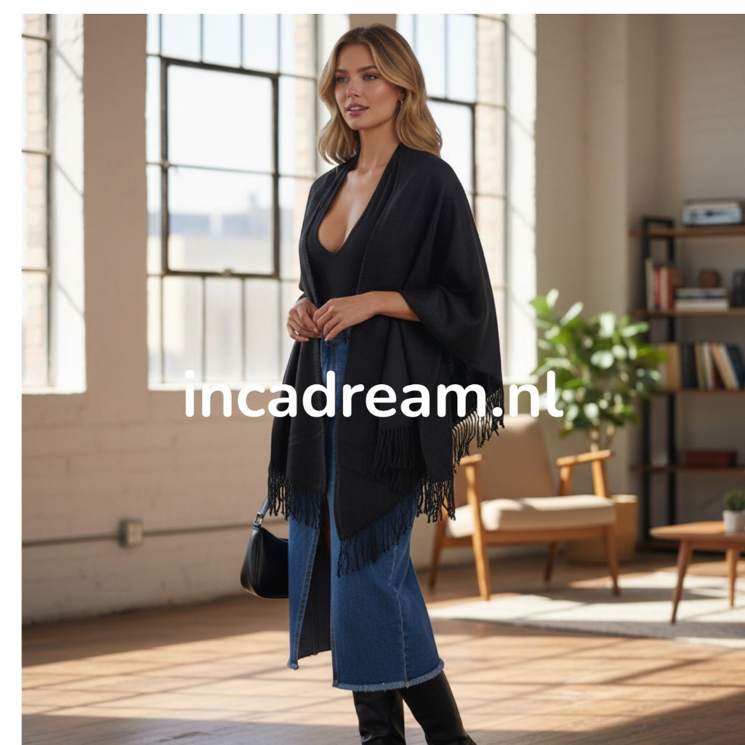 open poncho is goed draagbaar voor een casual or chic outfit.