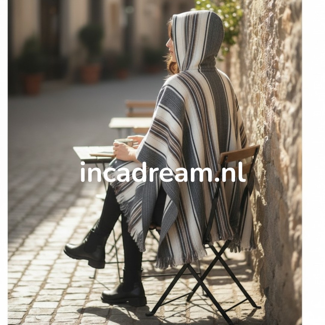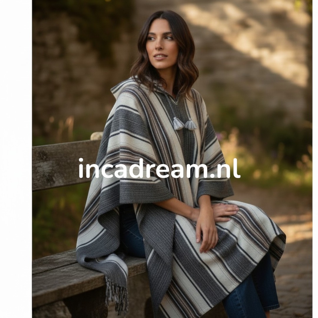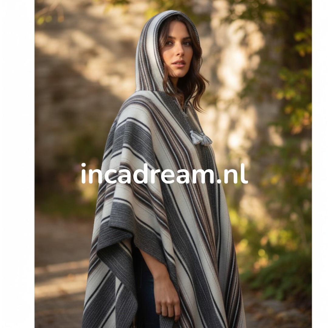 Poncho met capuchon, Dames wol en alpaca jas poncho cape met capuchon, Gestreepte poncho Dames