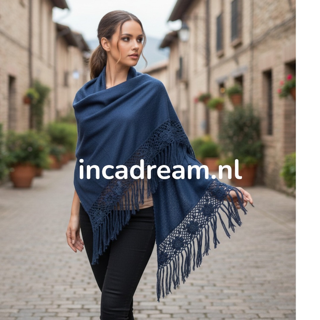 Alpaca triangle poncho sjaal blauw