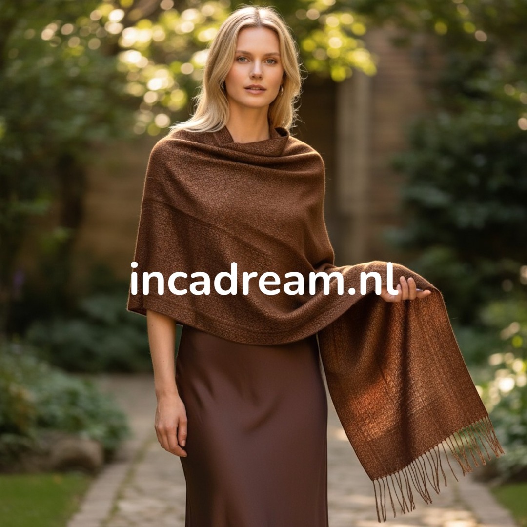This beautiful superfine alpaca blend scarf by Inca Dream is the perfect accessory for your lente-zomer outdoors. Our baby alpaca scarf is perfect for your evening cocktail party!