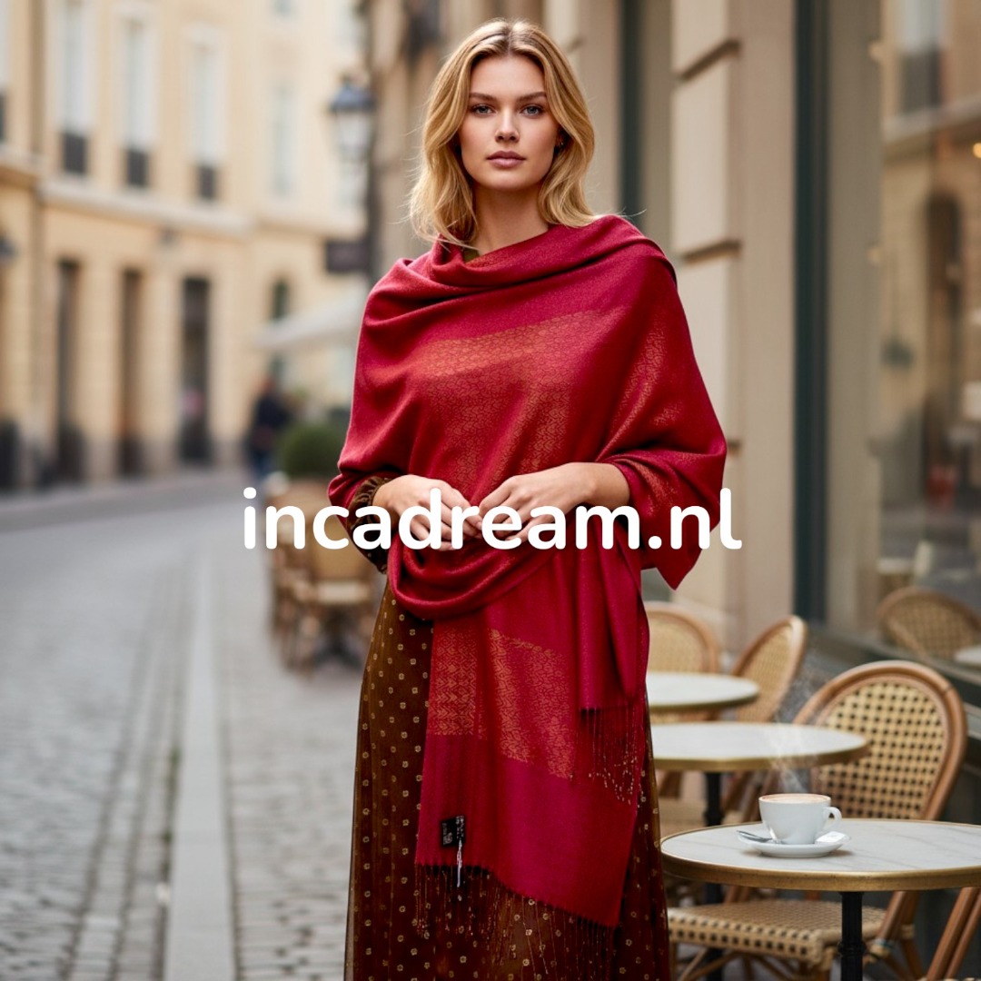 This beautiful superfine alpaca blend scarf by Inca Dream is the perfect accessory for your lente-zomer outdoors. Our baby alpaca scarf is perfect for your evening cocktail party!