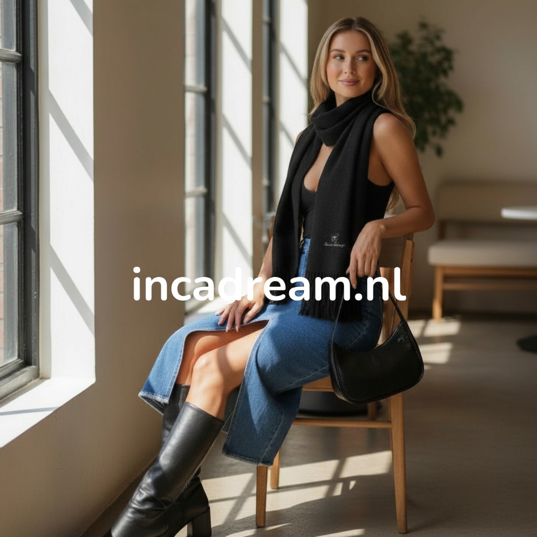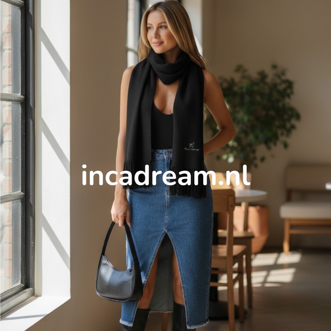 Prachtige effen Alpacawol sjaal zwart, lekker zachte en met een mooie glans, die net zo zacht is als hij eruit ziet in de foto. Deze alpacawol sjaal is geweven met 30% alpaca wol en 70% acryl. Alpaca wol kriebelt niet en is hypoallergeen van nature, De sjaal is geweven in de Peruaanse Andes.