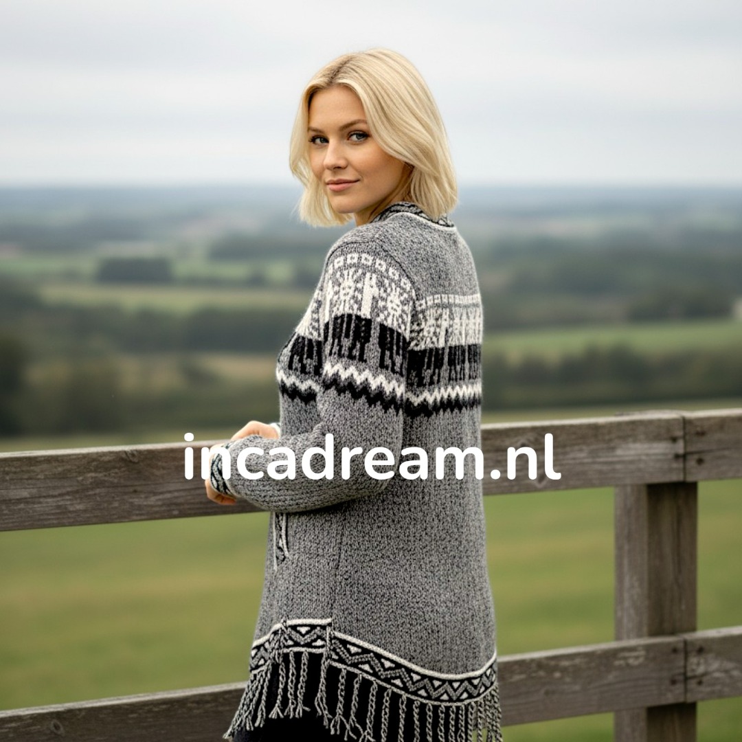 The Alpaca jumper is designed to fit the body softly and smoothly, made with Alpaca wool, this tuniek pullover is so soft you'll want to wear it around the clock! Featuring an oversized hood, a unique Inca tribe border design on the hem and cuffs, a criss cross string colar with beaded strings, it's possible to be super comfy and stylish simultaneously!