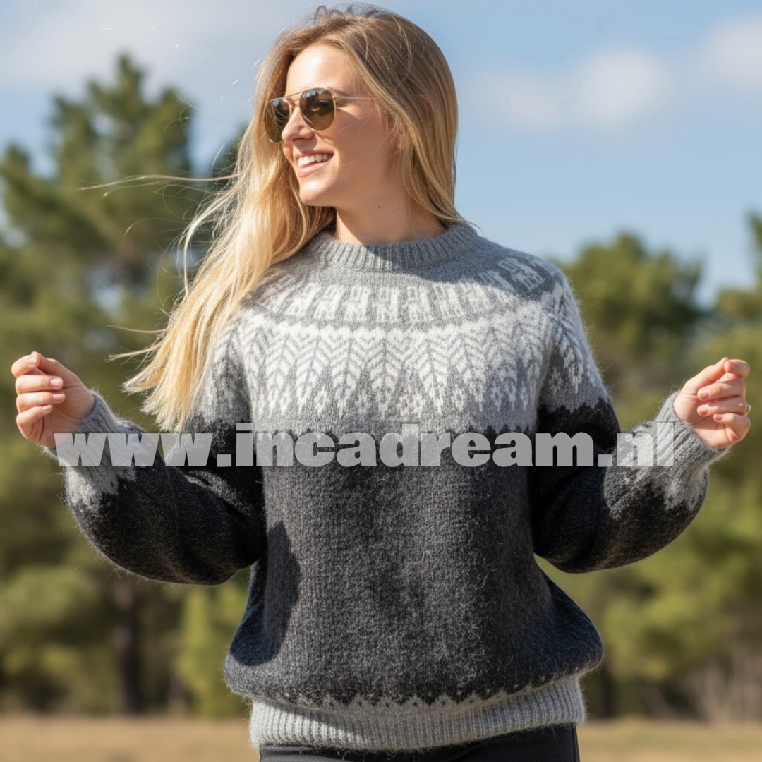 cozy sweater is made from naturally insulating alpaca wool and is knitted with a classic Fair Isle pattern. It's cut for a relaxed fit and has a chunky, ribbed neck. Wear yours with jeans or leggings.