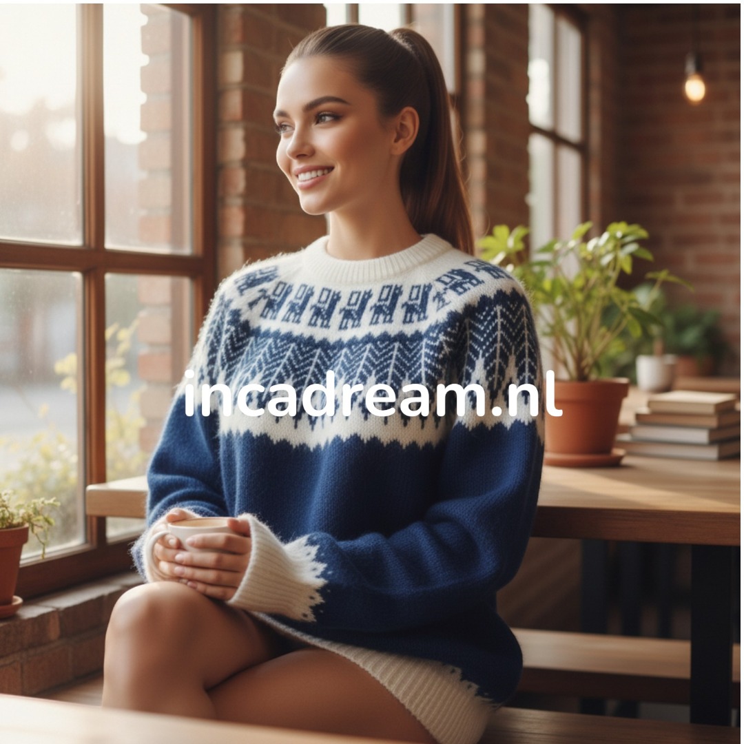 cozy sweater is made from naturally insulating alpaca wool and is knitted with a classic Fair Isle pattern. It's cut for a relaxed fit and has a chunky, ribbed neck. Wear yours with jeans or leggings.