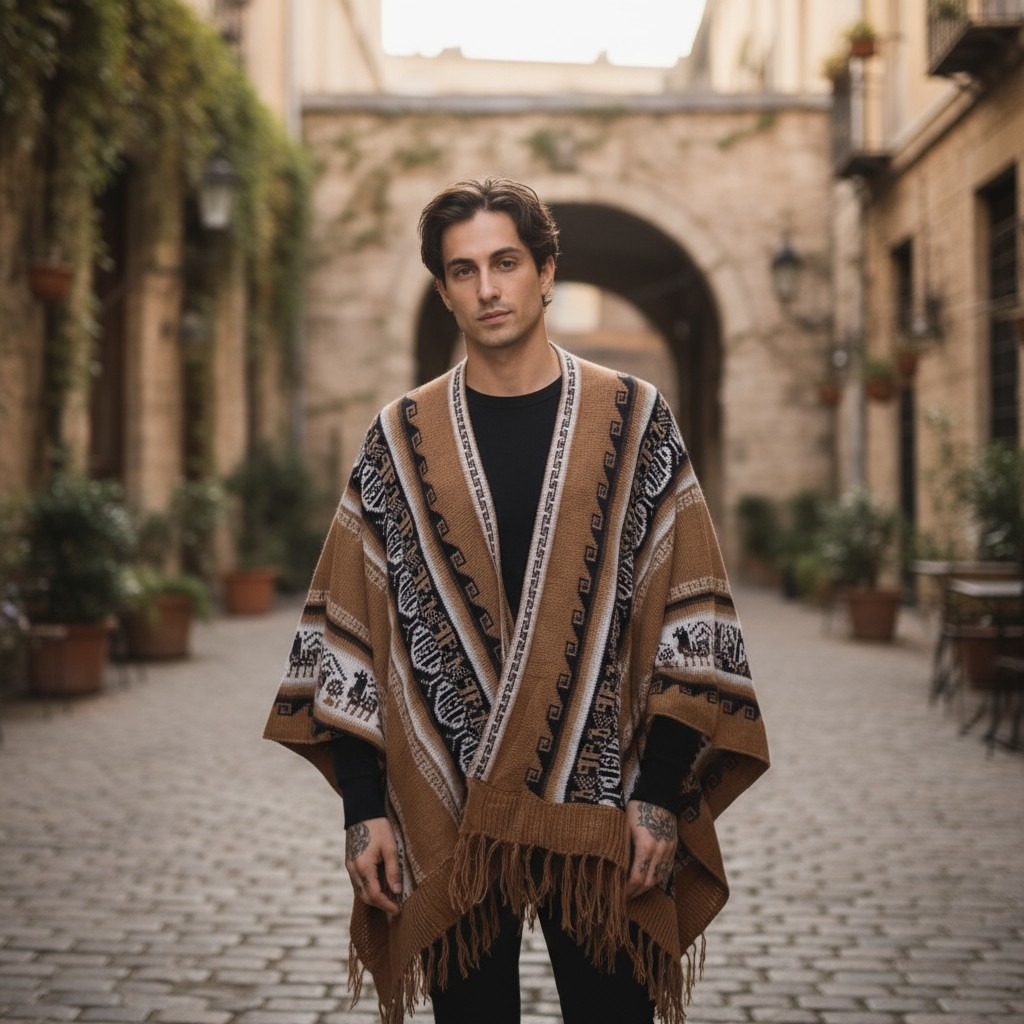 Deze alpaca wollen omslagdoek is lekker dik en heerlijk warm voor de winter. Met dit mooie kleuren conbinatie en de Inca patron is dit poncho een echte eyecather. Je kunt hem draperen als een poncho of dragen als oversized sjaal.