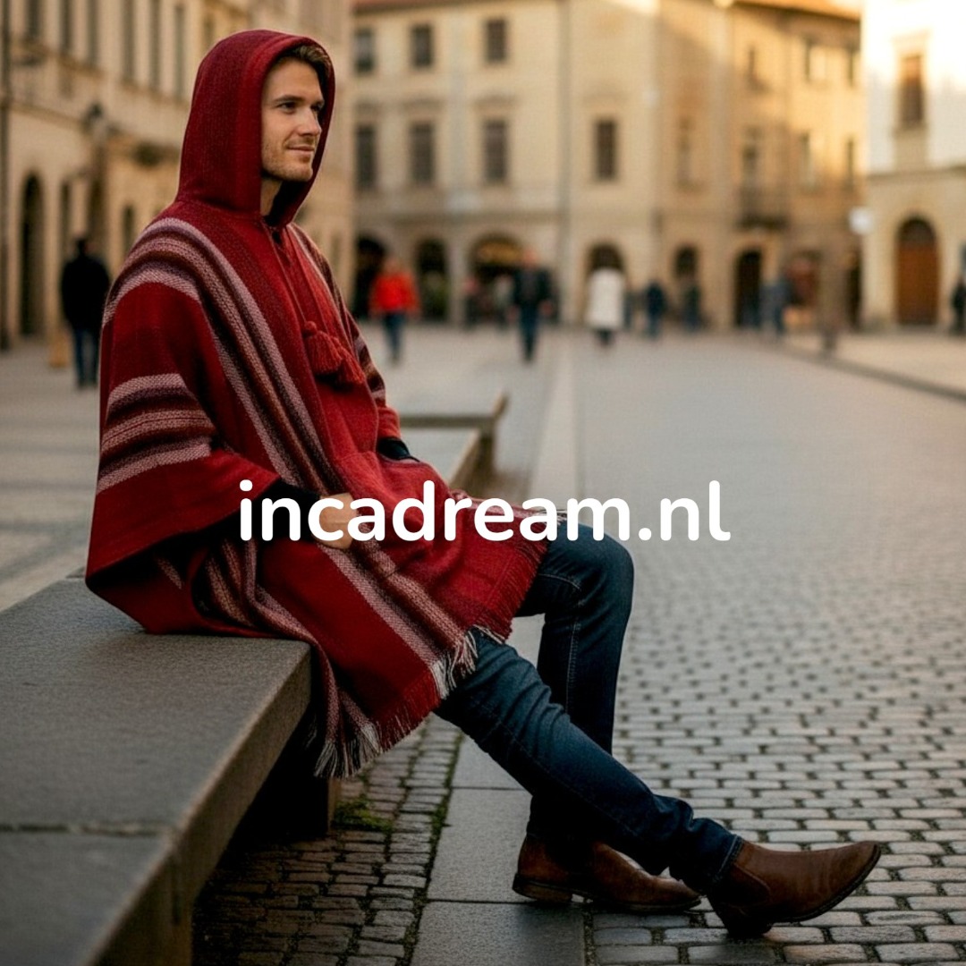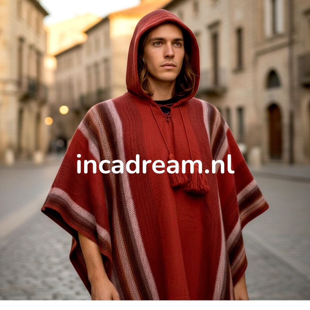 Poncho met capuchon mannen rood