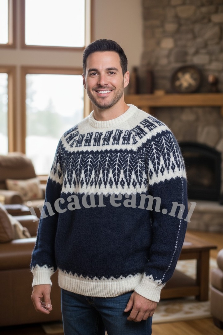 cozy sweater is made from naturally insulating alpaca wool and is knitted with a classic Fair Isle pattern. It's cut for a relaxed fit and has a chunky, ribbed neck. Wear yours with jeans or leggings.