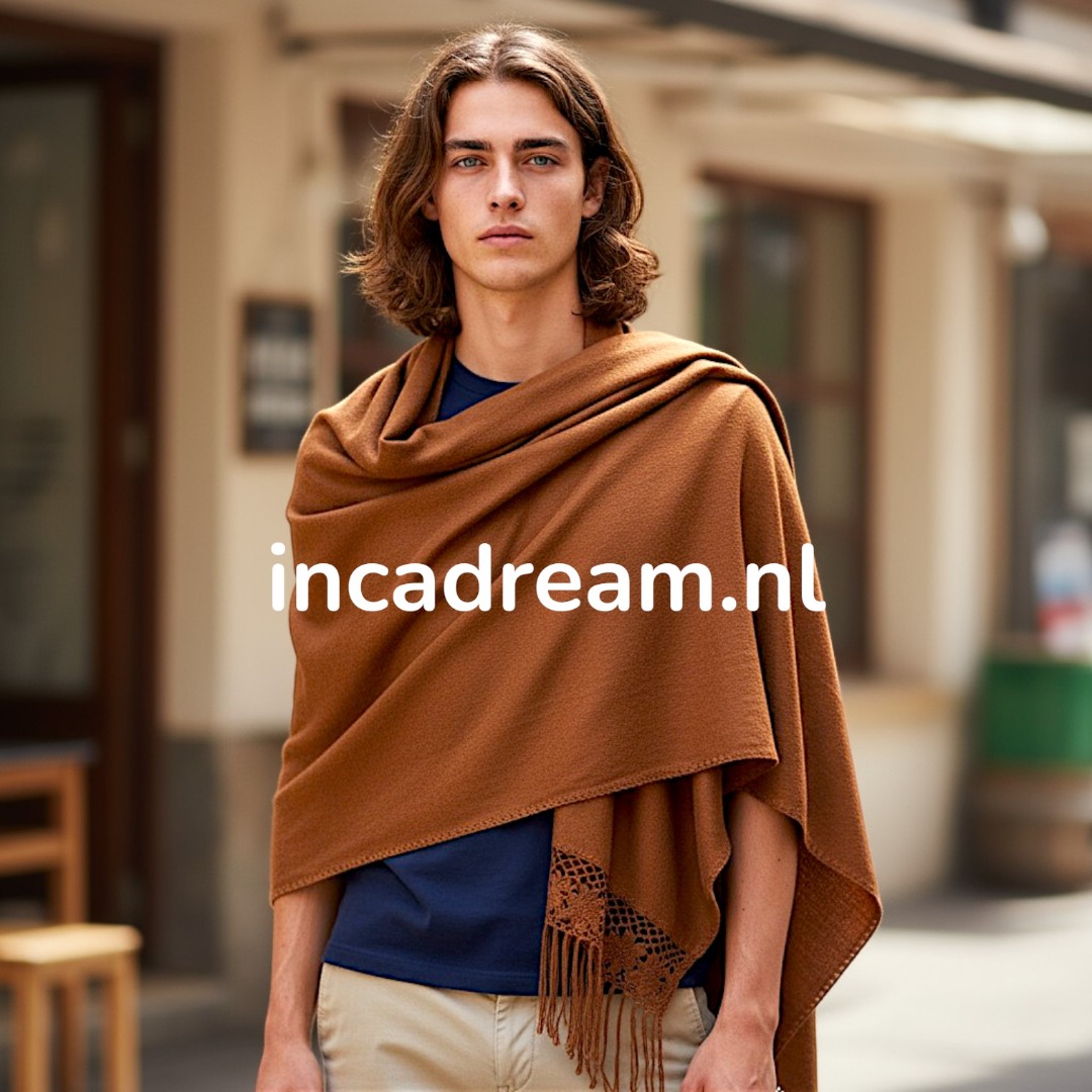 The camel tone lends it a versatile, classic look that complements both casual and formal outfits, while the hand-finished fringe detailing adds a touch of artisanal charm. Perfect for cool evenings or elegant layering, this scarf embodies the artistry and heritage of Peruvian craftsmanship.