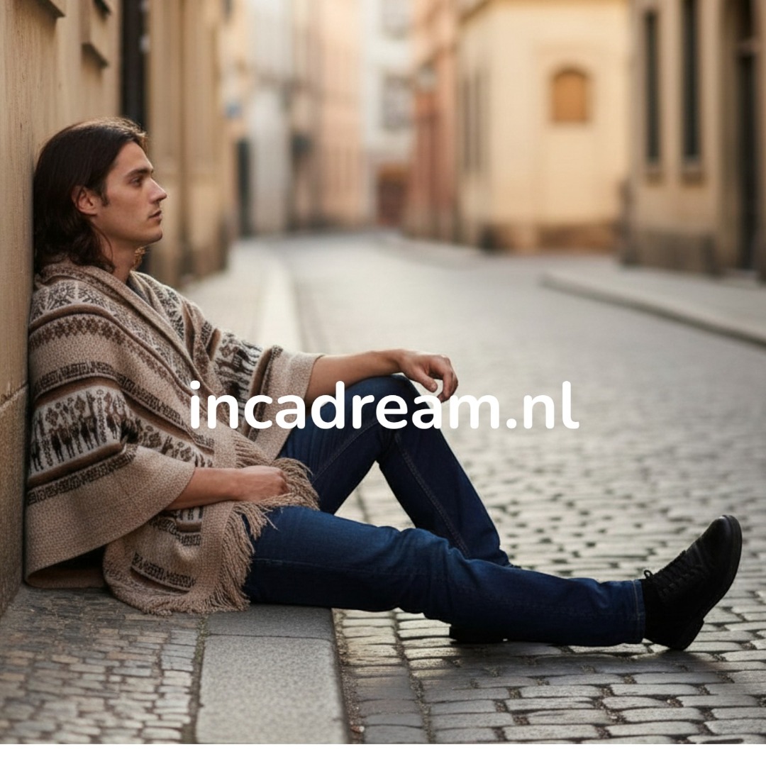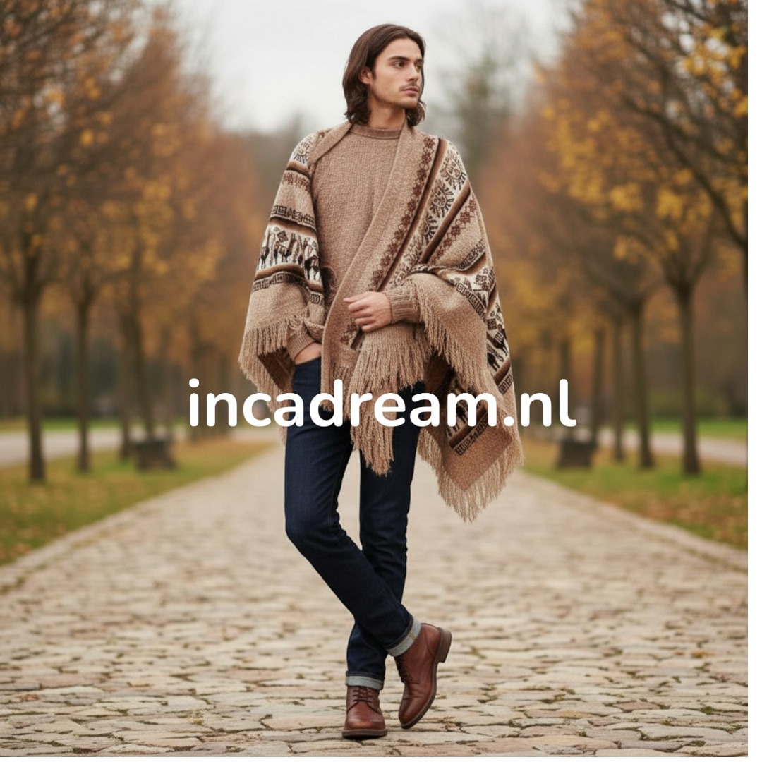 Een heerlijke warme alpaca wollen poncho omslagdoek voor over je colbert, vest of lekker voor op de bank.