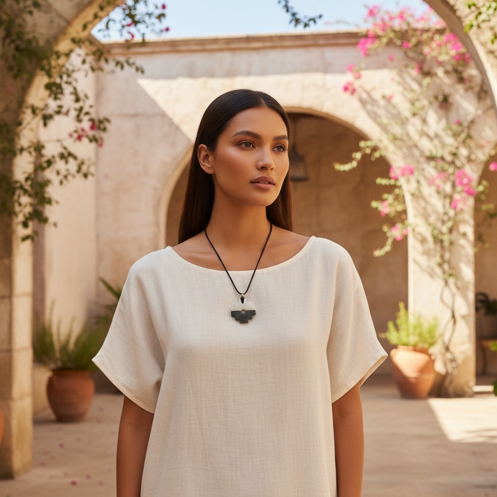 De Chakana (Inca-kruis) is een heilig symbool van de oude Andesbeschaving en staat voor de eenheid van lichaam, geest en ziel. Deze Chakana is met respect en aandacht vervaardigd uit authentieke Peruaanse steen en draagt de spirituele energie van de Andes. De kruisvorm symboliseert de verbinding tussen het kosmische, het aardse en het innerlijke bewustzijn, en nodigt uit tot balans, harmonie en innerlijke groei.