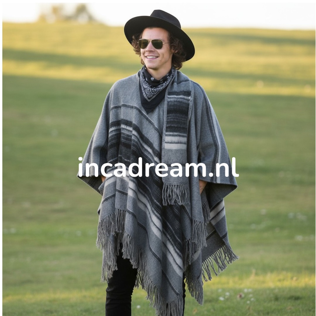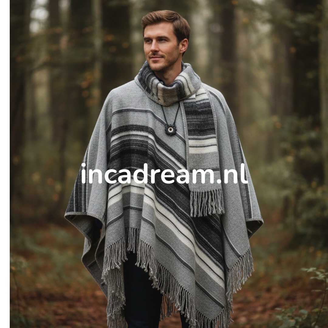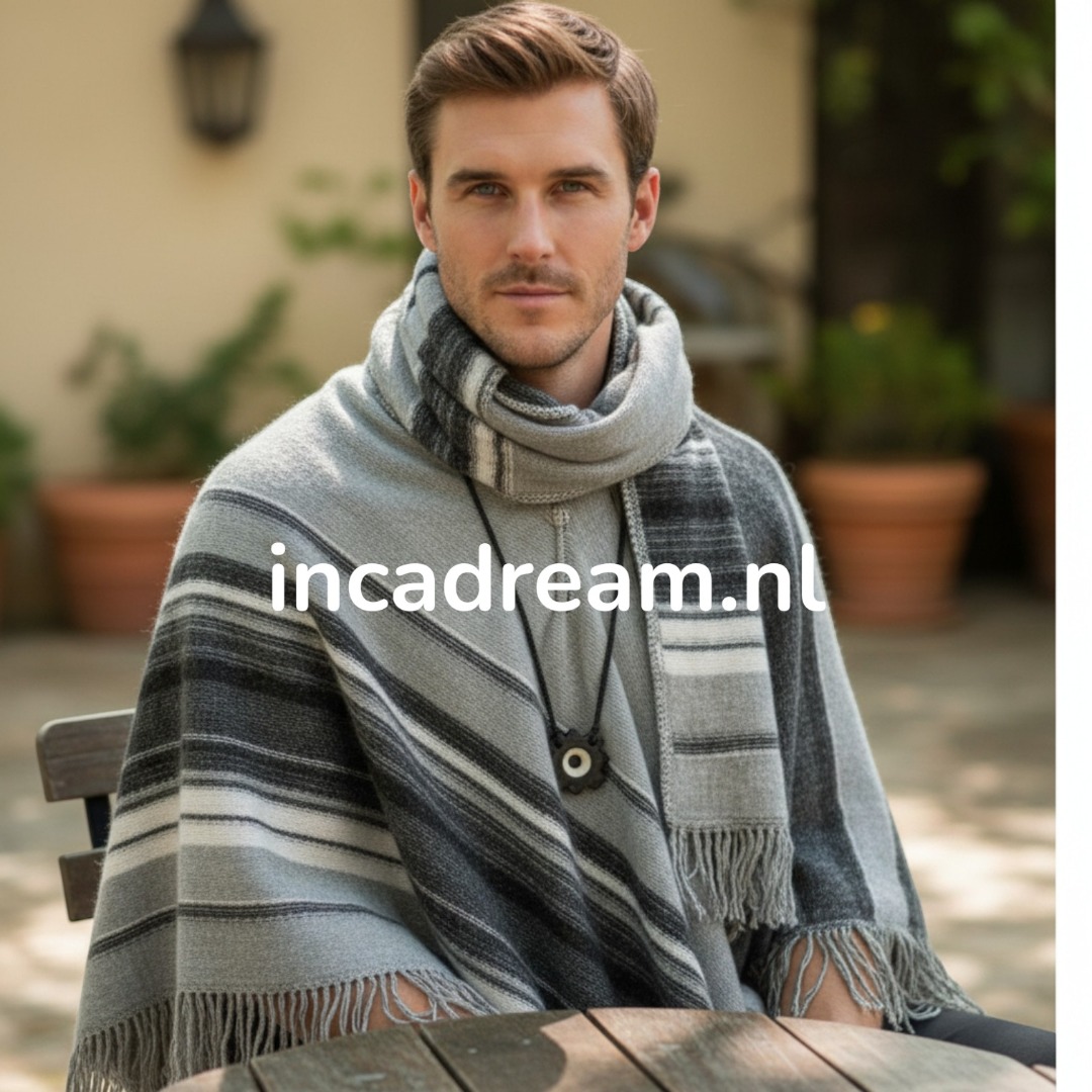 Zilver grey Peruvian Poncho Ruana, genuine alpaca fiber. Gorgeous and soft